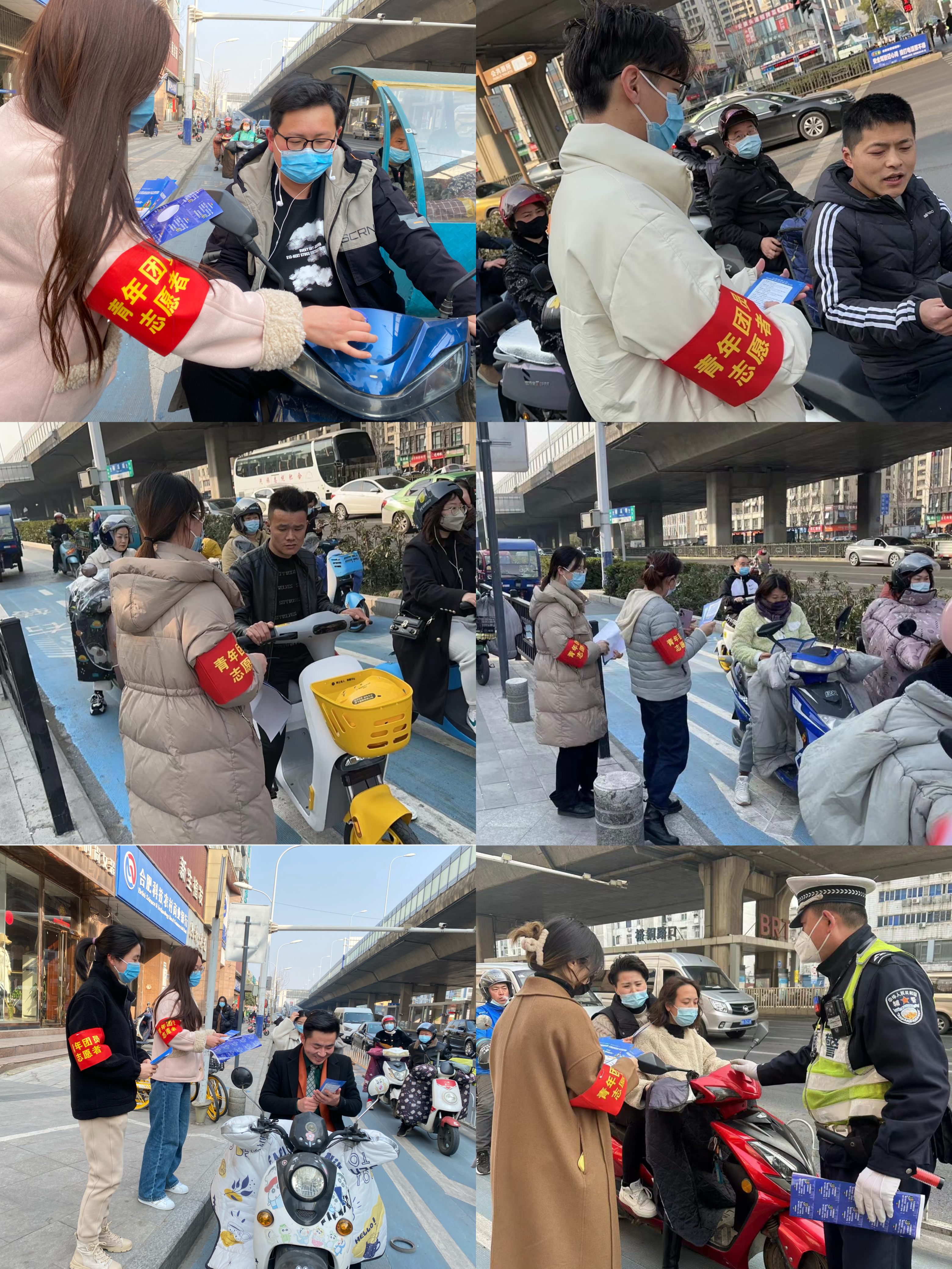3月1日起,《安徽省電動自行車管理條例》正式施行,分公司團支部積極響應,3月2日下午組織志愿者走上街頭勸導不文明交通行為,引導市民文明出行,自覺遵守交通法規。