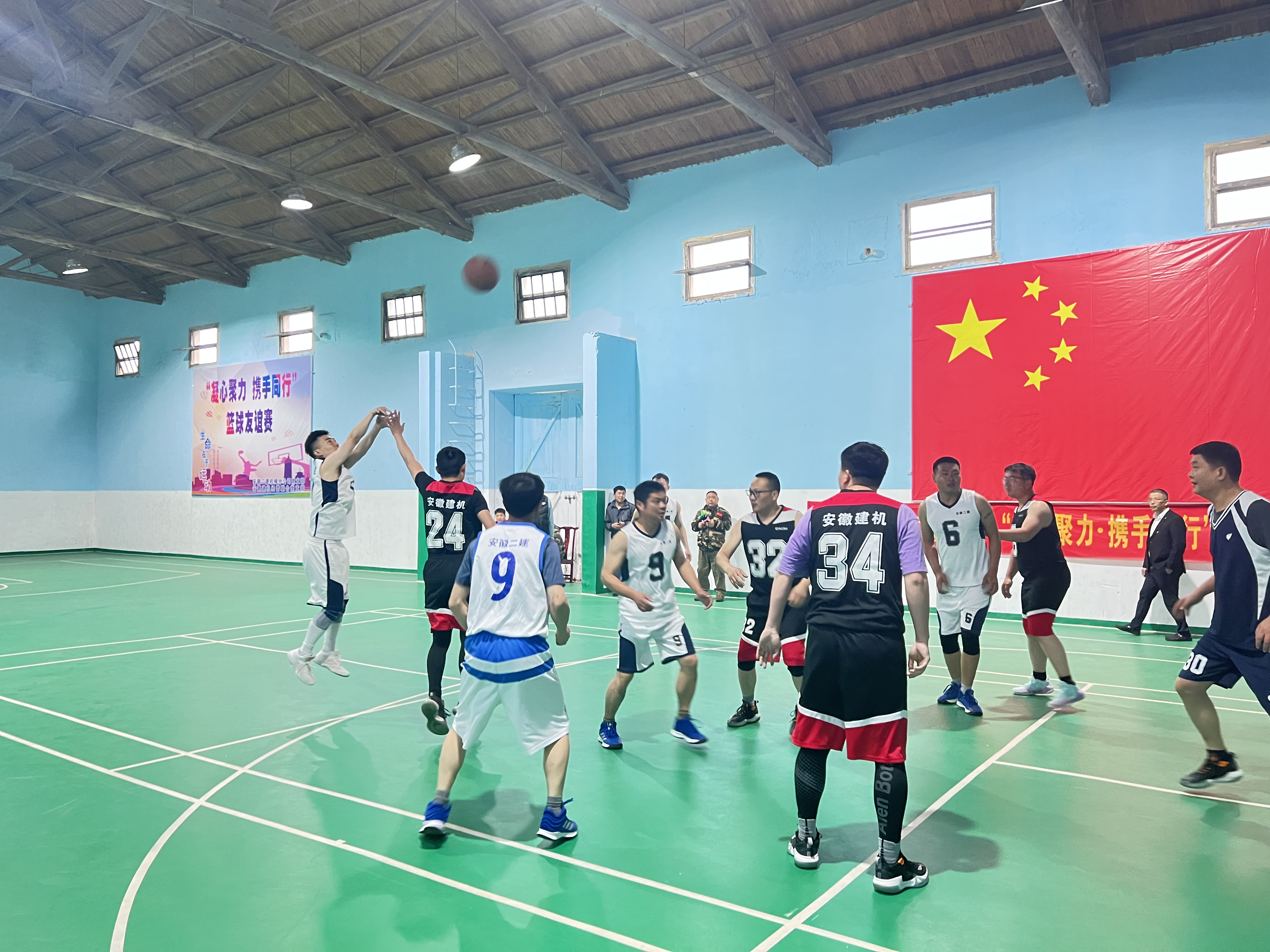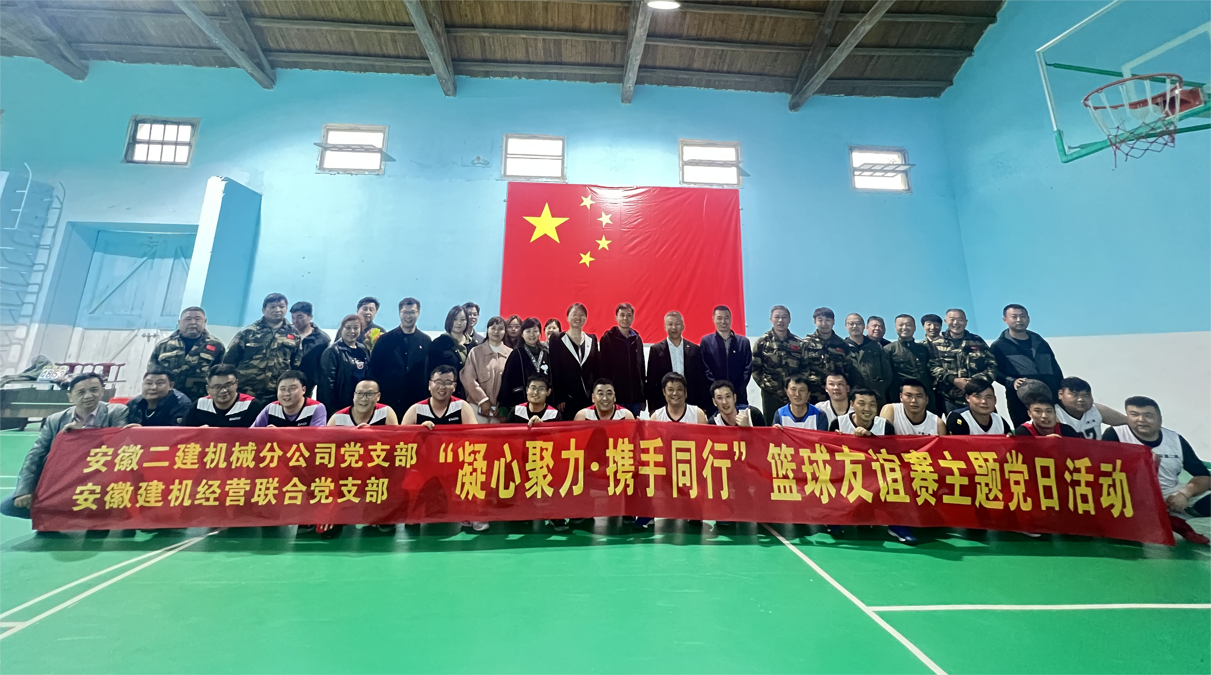 4月23日下午,安徽二建機械分公司黨支部與安徽建機經營聯合黨支部在二建機械分公司黃栗基地籃球開展“凝心聚力?攜手同行”籃球聯誼賽