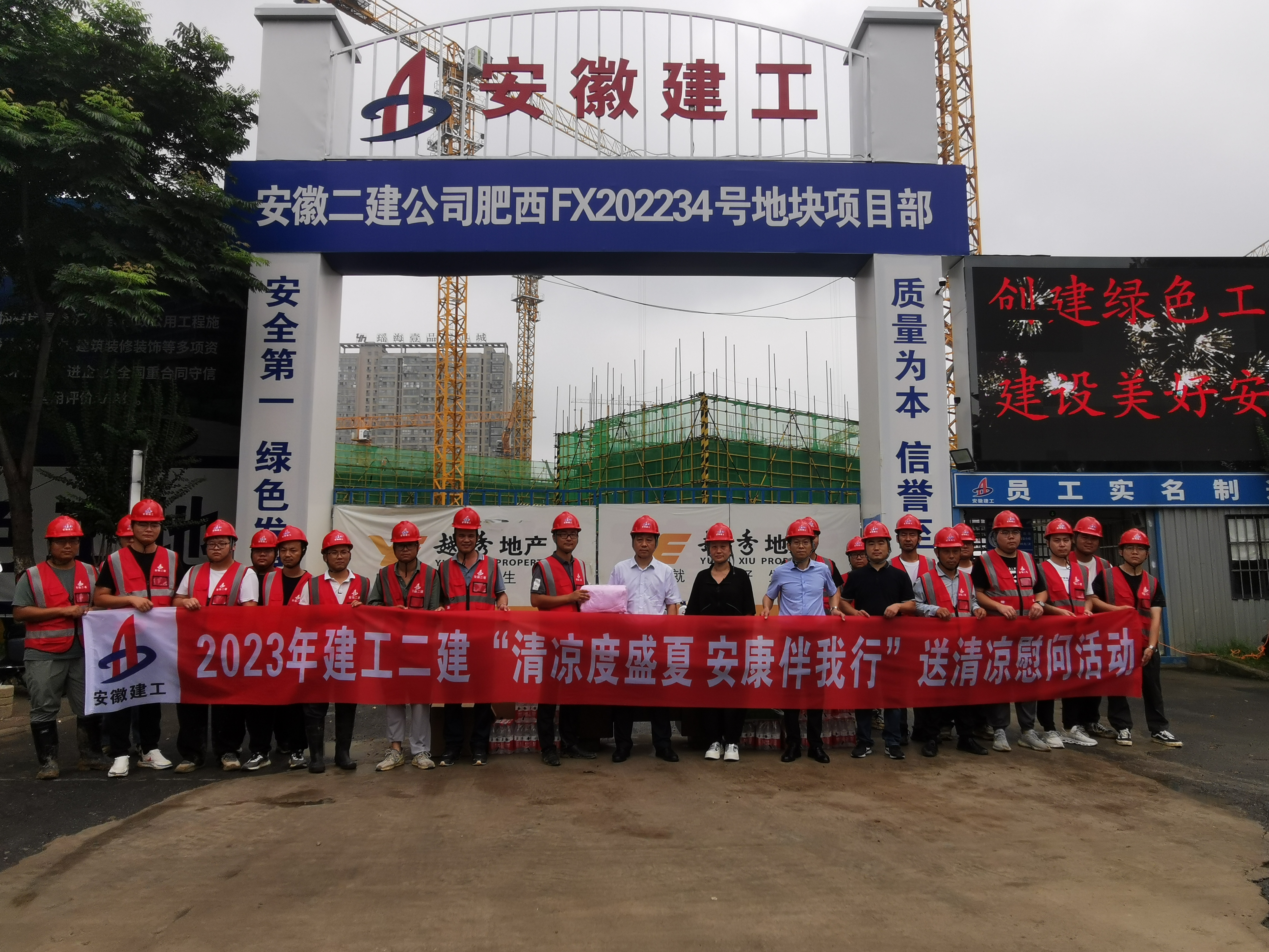“三伏”季節,酷暑難耐。7月19日上午,建工二建黨委副書記、總經理葛輝一行赴第四公司肥西FX202234#地塊項目開展“送清涼”活動并指導工作。