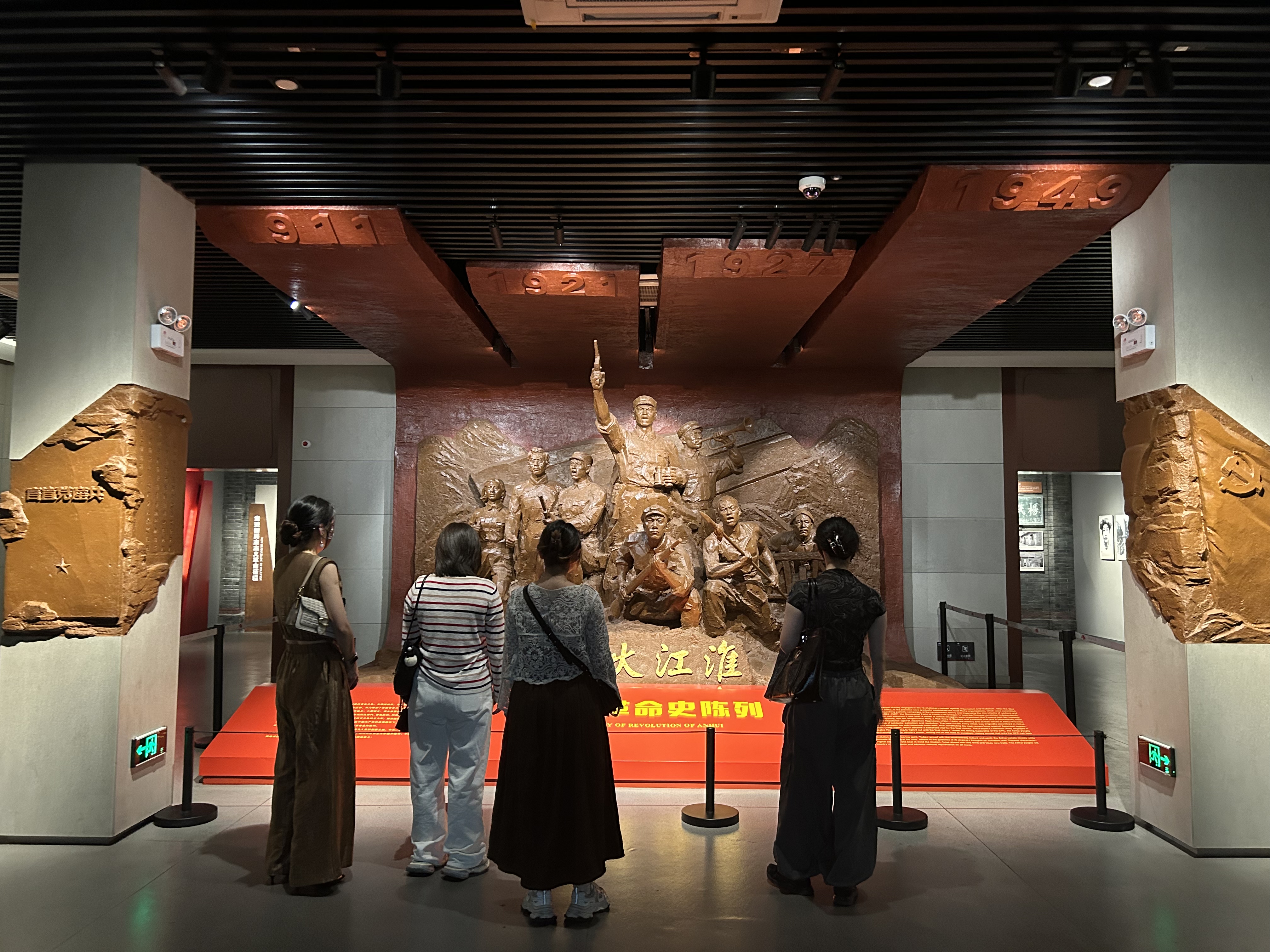 團(tuán)員青年來(lái)到安徽博物院,首先參觀(guān)“觀(guān)烽火江淮——安徽革命史陳列館”“安徽革命史陳列”分為“革命賡續(xù) 安徽建黨”“紅色沃土 紅軍搖籃”“華中砥柱 鐵軍戰(zhàn)歌”“江淮鏖兵 革命勝利”四個(gè)部分。展館以實(shí)物、歷史照片、多媒體等方式鮮活再現(xiàn)了自“五四運(yùn)動(dòng)”后安徽兒女的革命歷史。隨后,團(tuán)員青年們依次參觀(guān)了而今邁步從頭越——紀(jì)念毛澤東視察安徽省博物館六十周年、龍行中華——甲辰龍年生肖文物大聯(lián)展等展覽。