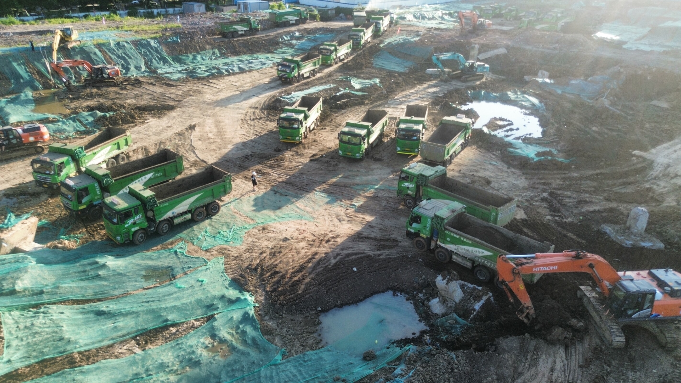 當烈日遇上敬業,當高溫碰上責任,持續的高溫“烤”驗著堅守在一線人員的意志。入伏以來,氣溫不斷攀升,驕陽如火,項目管理人員克服高溫天氣等不利因素影響,起早貪黑,避開高溫時段,加班加點施工,高標準嚴要求落實每一道工序。截止7月底,一、二標段土方開挖外運累計完成169380m3。