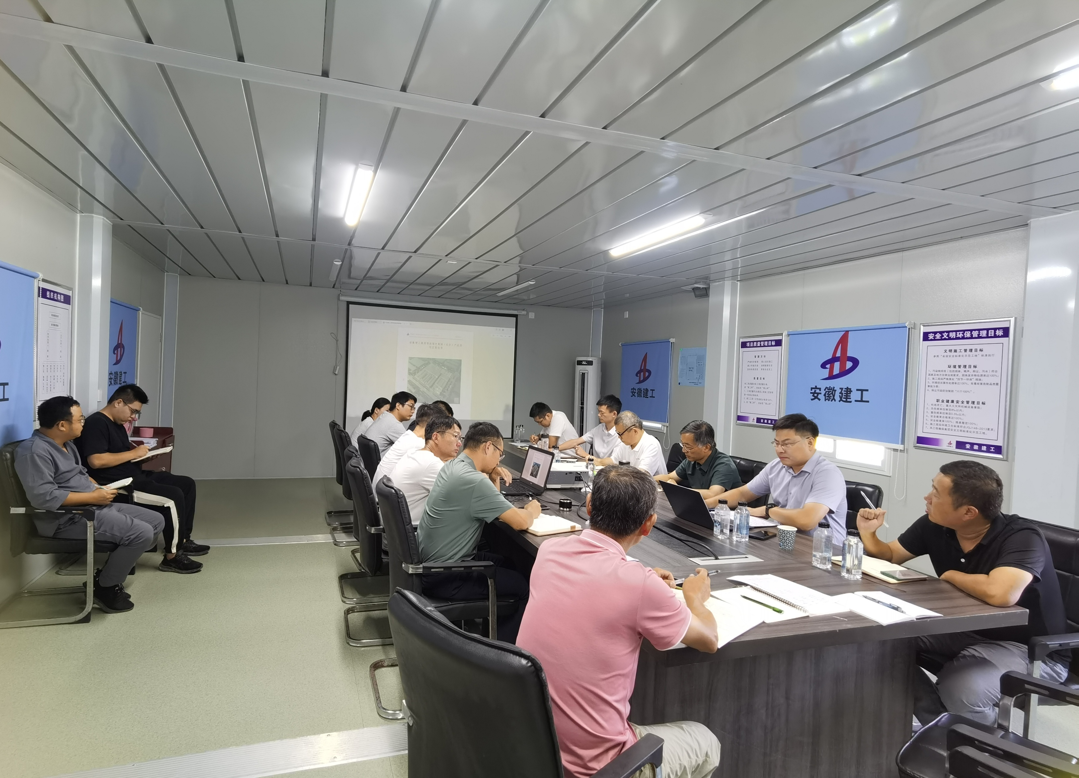 8月22日上午,建工二建總工程師吳彬一行赴安徽建工集團智能綠色制造(長豐)產業園項目召開策劃評審會。