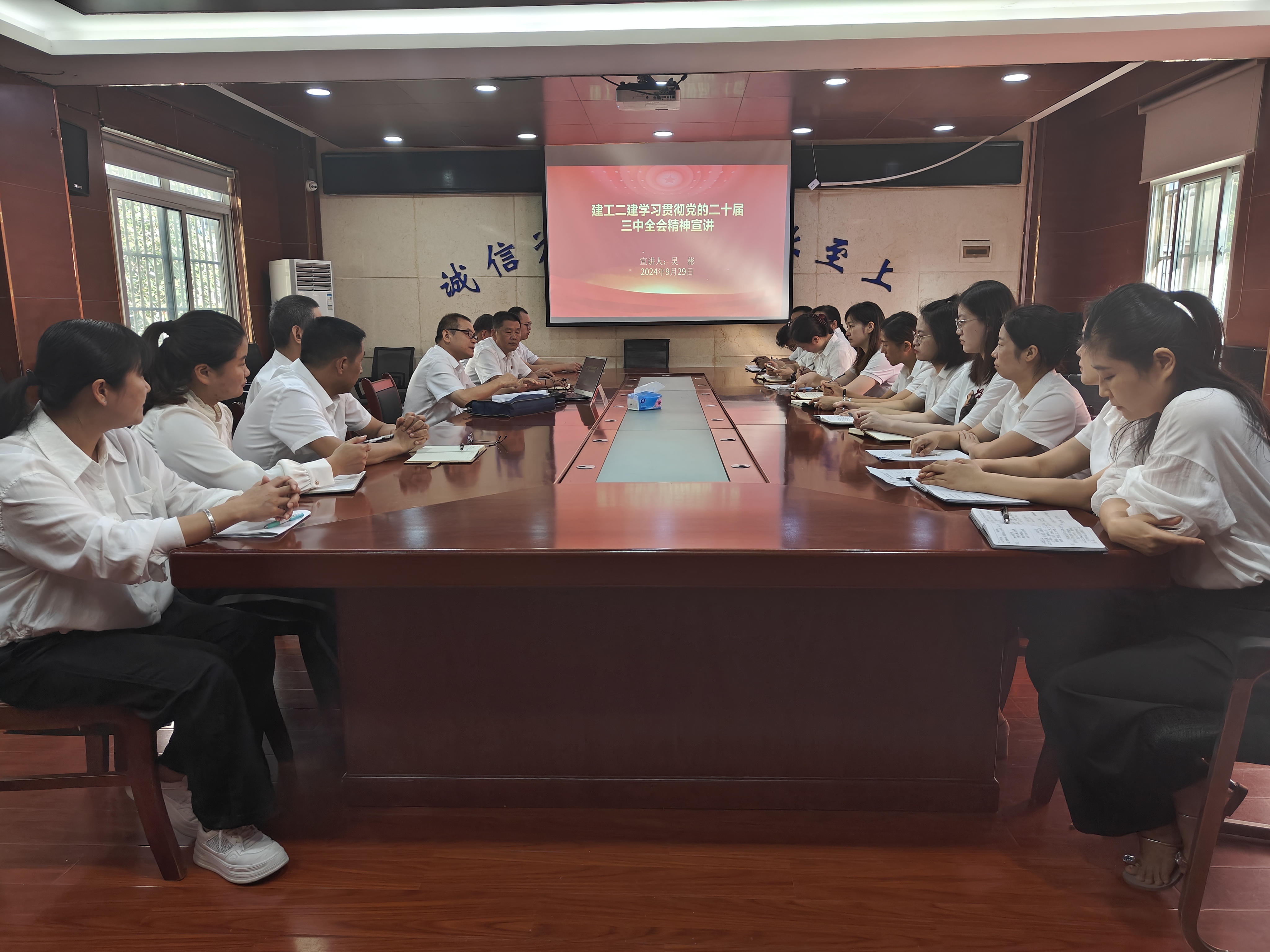 為深入學(xué)習(xí)貫徹黨的二十屆三中全會(huì)精神,9月29日上午,建工二建總工程師吳彬赴人才管理中心開展黨的二十屆三中全會(huì)精神的專題宣講,人才管理中心全體職工參會(huì)。