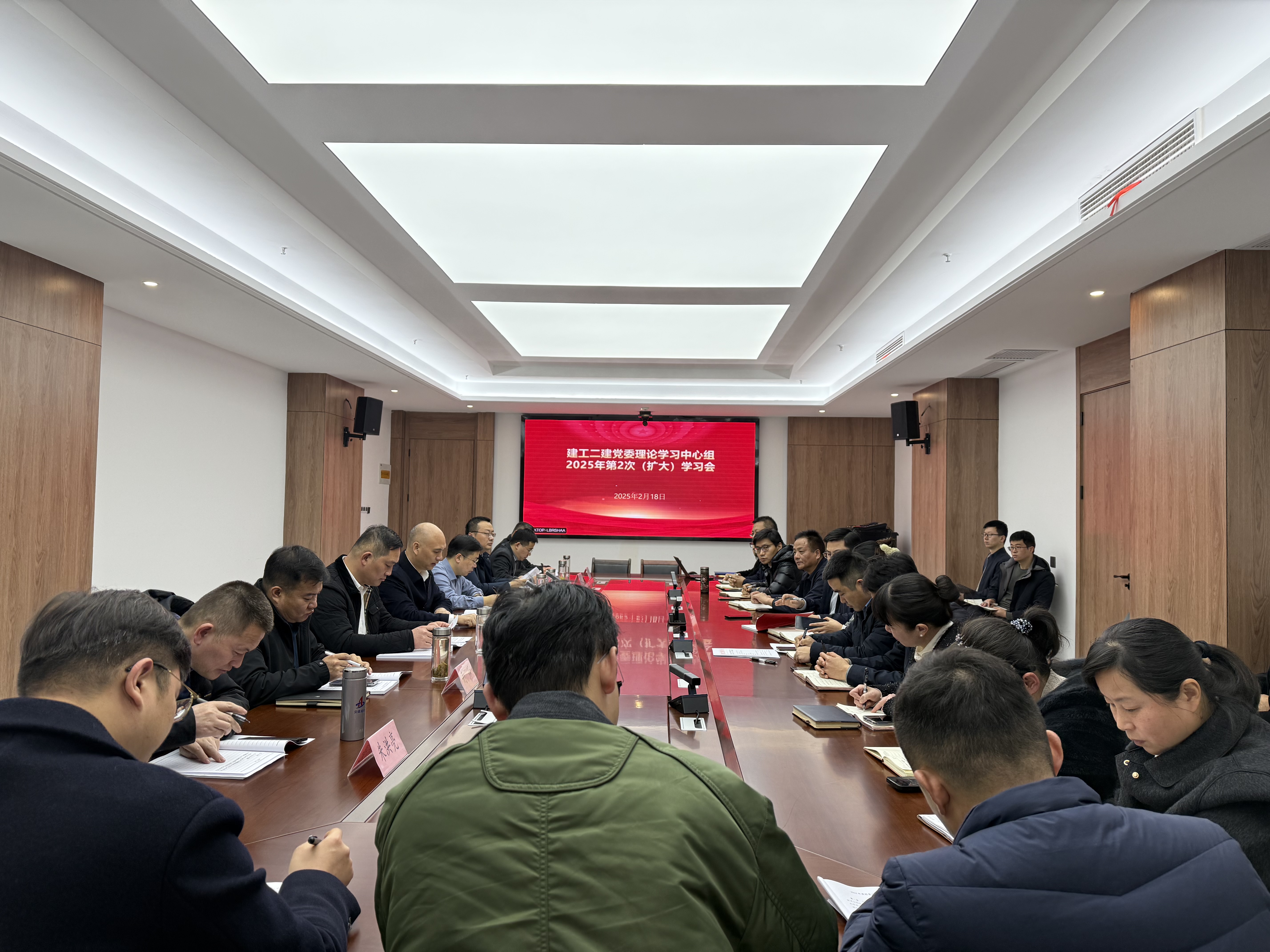 2月18日晚,建工二建召開黨委理論學習中心組(擴大)學習會議,深入學習宣貫集團三屆二次職代會暨2025年工作會議精神。公司領導班子成員,在宿中層管理人員參加會議。建工股份黨委委員、副總經理,建工二建黨委書記、董事長朱忠明主持會議并講話。