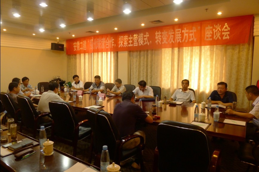 8月25日,安徽二建公司就“如何強(qiáng)化聯(lián)營(yíng)合作管理,探索主營(yíng)業(yè)務(wù)發(fā)展模式,轉(zhuǎn)變發(fā)展方式”在六安分公司召開(kāi)了專題座談會(huì)。公司領(lǐng)導(dǎo)班子成員、總經(jīng)理助理、副總工程師、副總經(jīng)濟(jì)師等人員參加會(huì)議,集團(tuán)公司黨委委員、副總經(jīng)理王元曦親臨會(huì)議并做重要講話。