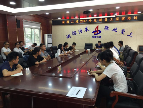 6月19日,安徽二建公司在一樓會議室對32名新進員工進行了崗前培訓。公司人力資源部負責人代表公司全體同事對新員工的到來表示歡迎,并向新員工介紹了企業(yè)目前發(fā)展狀況、規(guī)章制度、福利待遇等情況,以及本次培訓的課程安排。