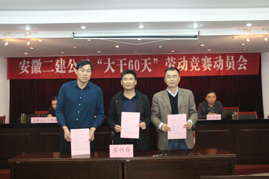 2017年已漸入歲末。為更好地全面完成年初公司既定各項經(jīng)濟技術目標任務,在項目上掀起大干熱潮,安徽二建公司于11月6日下午,在原辦公樓三樓會議室召開“大干60天”勞動競賽動員會。公司領導及機關職能部門負責人、所屬各基層單位黨政一把手、公司在建20個自營項目負責人等60余人參加動員會。