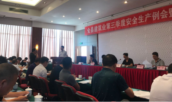 岳西縣建筑業(yè)第三季度安全生產(chǎn)例會于2019年9月12日上午在天際大酒店召開,安徽二建一分公司承建的安徽潤業(yè)國際電商產(chǎn)業(yè)園項(xiàng)目獲評岳西縣第三季度“最優(yōu)工地”,項(xiàng)目經(jīng)理王偉翔到會發(fā)言并參與交流。