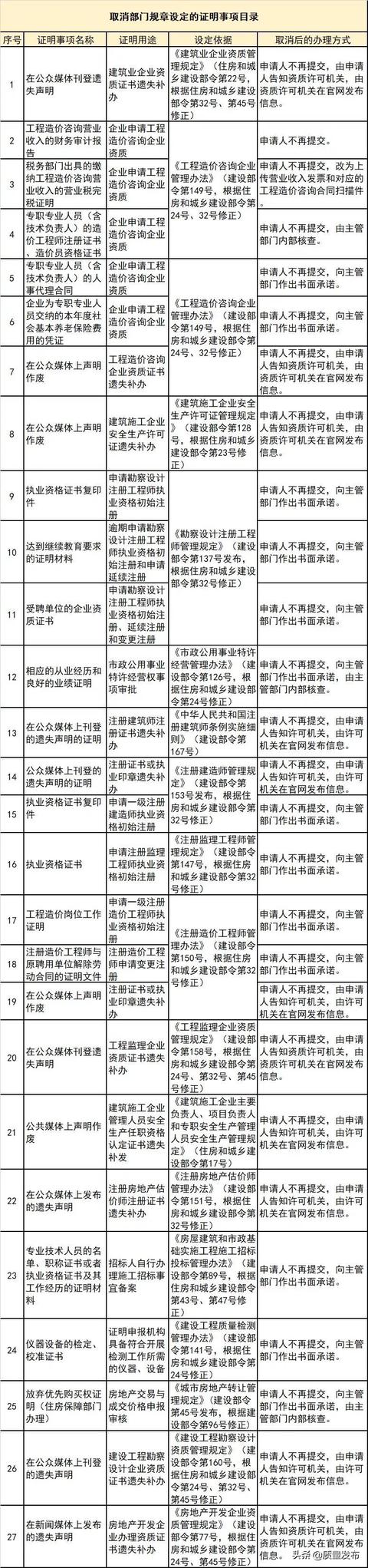 近日,住建部下發(fā)通知,自9月16日起,再取消一批證明事項(xiàng),涉及資質(zhì)、招標(biāo)、執(zhí)業(yè)資格證書等事項(xiàng)證明。