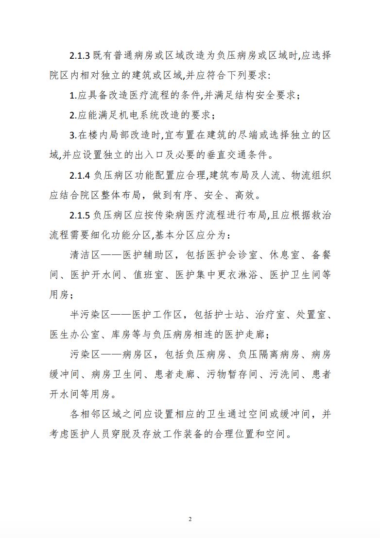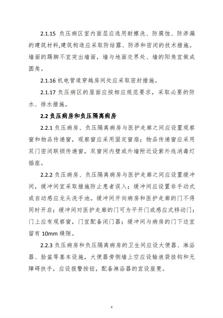 為進一步做好新冠肺炎疫情防控工作,加強新冠肺炎應急救治設施建設,國家衛健委辦公廳、住房和城鄉建設部辦公廳近日聯合印發《新冠肺炎應急救治設施負壓病區建筑技術導則(試行)》,供各地結合防疫工作和實際需要參考執行。導則包括建筑設計、結構設計、給水排水設計、供暖通風及空調設計、電氣及智能化設計、運行維護等8個方面。