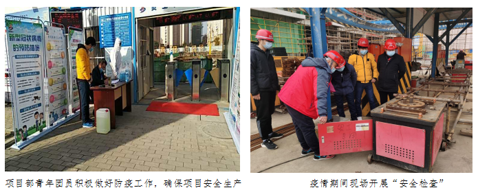 一手抓疫情防控,一手抓復工復產。青年團員在做好本職工作的同時,積極協助項目部做好復工復產工作。通過對返崗人員進行體溫測量、嚴格進行實名制登記、摸排勞務人員活動軌跡、編制“一人一表”,對施工作業(yè)現場及大型機械設備進行安全檢查,對辦公區(qū)、生活區(qū)采取“日消毒”及作業(yè)面醒目位置懸掛防疫專題廣告、標語等方式,堅決做到對疫情的嚴防死守、群防群控。青年團員在項目經理的帶領下對現場安全、質量進行檢查,對防護措施不到位處要求立即整改,確保員工的生命安全和項目復工復產。