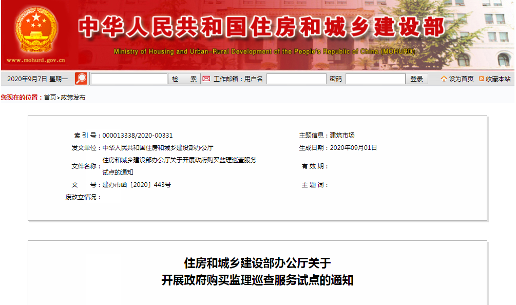 住房和城鄉(xiāng)建設(shè)部開展政府購買監(jiān)理巡查服務(wù)試點(diǎn)