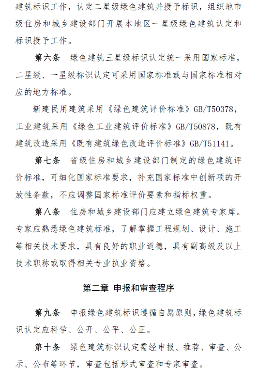 《辦法》要求,綠色建筑三星級標識認定統(tǒng)一采用國家標準,二星級、一星級標識認定可采用國家標準或與國家標準應的地方標準。