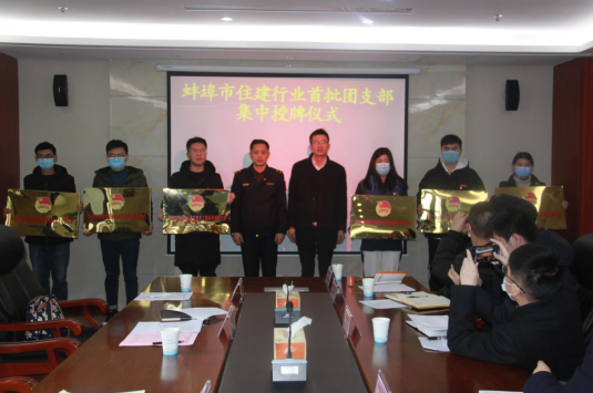 安徽二建蚌埠溪湖湖山春曉、山香安置房項目參加蚌埠市住建行業首批團支部集中授牌