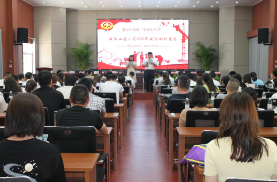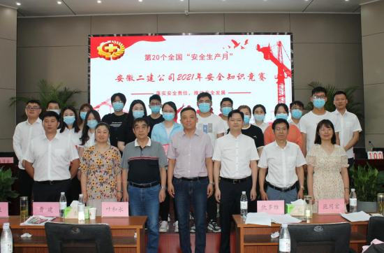 在全國第20個“安全生產月”到來之際。為了營造濃厚的安全生產氛圍,人人講安全、人人重視安全。6月7日下午,在安徽二建公司新會議室舉行以“落實安全責任,推動安全發(fā)展”為主題的安全知識競賽。公司黨委副書記、紀委書記仇多維,副總經理葉和永,安全總監(jiān)、安全管理部主任曹建,黨委工作部主任施用宏,工會副主席、女工主任王俊出席活動并擔任評委。14支代表隊及領隊共120多人參加。
