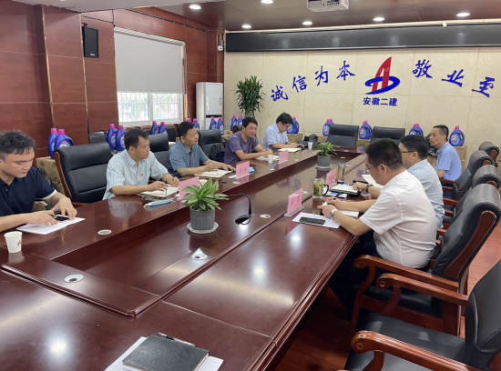 8月3日上午,瑤海區區委常委、政法委書記李祥一行蒞臨安徽二建公司調研指導,瑤海區住建局及轄區和平路街道相關領導陪同參加,公司總經理李建成、副總經理張露出席會議,財務資產部、市場開發部等相關部門列席。