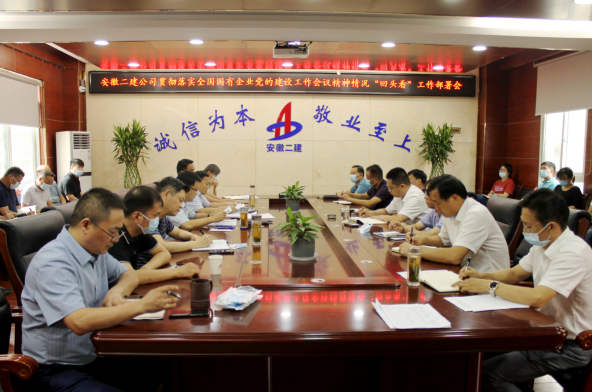 9月3日下午,安徽二建公司召開貫徹落實(shí)全國國有企業(yè)黨的建設(shè)工作會議精神情況“回頭看”工作部署會,學(xué)習(xí)傳達(dá)了建工控股黨委貫徹落實(shí)全國國有企業(yè)黨的建設(shè)工作會議精神情況“回頭看”工作部署會暨三季度黨群工作會議精神,并對公司開展“回頭看”工作進(jìn)行部署安排。公司黨委副書記、總經(jīng)理李建成作動員講話,公司黨委副書記、工會主席王軍主持會議。公司領(lǐng)導(dǎo)班子成員、機(jī)關(guān)部門主要負(fù)責(zé)人、所屬各單位黨政主要領(lǐng)導(dǎo)參會。