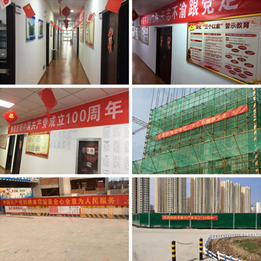 鑄就百年輝煌,書寫千秋偉業(yè)。為迎接中國共產(chǎn)黨成立100周年,六分公司機關(guān)及所屬項目部紛紛懸掛張貼了有關(guān)慶祝中國共產(chǎn)黨成立100周年的標(biāo)語,營造濃厚的宣傳氛圍,把黨史學(xué)習(xí)教育進一步推向深入,大力營造“黨的盛典、人民的節(jié)日”濃厚氛圍,充分展示中國共產(chǎn)黨百年光輝歷程、偉大成就和寶貴經(jīng)驗,全面營造濃厚氛圍, 共慶黨的百年華誕,大力唱響共產(chǎn)黨好、社會主義好,改革開放好、偉大祖國好、各族人民好的時代主旋律。