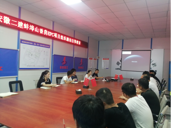 8月11日中午,一分公司黨支部書記倪海霞在蚌埠山香安置房EPC項目部開展廉潔從業(yè)教育,強調(diào)作風建設(shè)的重要性,組織全體職工學(xué)習《工程建設(shè)領(lǐng)域廉潔風險防控清單》。