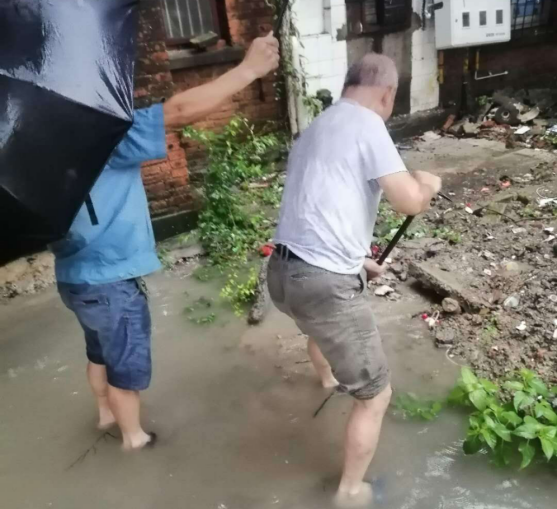 汛情就是命令,搶險就是責(zé)任。后勤黨員干部全體人員緊急行動。一是立即召開防汛救災(zāi)搶險工作緊急會議,總經(jīng)理助理蒯家江要求大家統(tǒng)一思想、提高站位、壓實責(zé)任、聽從指揮,加強隱患排查,勇于擔(dān)當(dāng)、不怕吃苦,第一時間發(fā)現(xiàn)險情報告并進(jìn)行處置,確保轄區(qū)內(nèi)住戶的生命財產(chǎn)安全。二是成立后勤黨支部防汛救災(zāi)搶險突擊小組。主任書記分別任正副組長,并對防汛救災(zāi)搶險工作做了分工和工作安排。三是立即啟動預(yù)案,根據(jù)汛情需要科學(xué)安排搶險救援任務(wù)、防汛物資準(zhǔn)備。其次整合后勤維修班人員沖在一線對老舊房區(qū)域地面進(jìn)行排澇排污,清除垃圾和廢棄物。要求全體員工從18日起進(jìn)入24小時緊急待命狀態(tài),保持手機暢通,隨時準(zhǔn)備投入到防汛救災(zāi)搶險的工作中去。四是加強公司轄區(qū)內(nèi)老舊平房區(qū)域的巡查檢視力度,包干劃片作業(yè),責(zé)任到人,后勤辦負(fù)責(zé)人負(fù)責(zé)總體調(diào)度協(xié)調(diào),與轄區(qū)政府、街道、社區(qū)溝通對接。五是加強對各處內(nèi)澇地點進(jìn)行排水,疏通管道,積極配合轄區(qū)街道做好防汛救災(zāi)搶險工作。同時對公司生活小區(qū)存在安全隱患的住戶,進(jìn)行引導(dǎo)疏散,截至18日上午10時,14、15棟平房20戶住家已經(jīng)全部安全疏散。