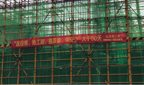為確保大干六十天能夠順利完成,銅陵吾悅廣場項目多次召開專題會議,對公司要求的各項任務進行分解,積極落實,要求全體管理人員勇于擔當,協調勞務班組,加班加點攻堅克難,確保項目安全生產和施工質量的前提下,保質保量的完成大干任務。
