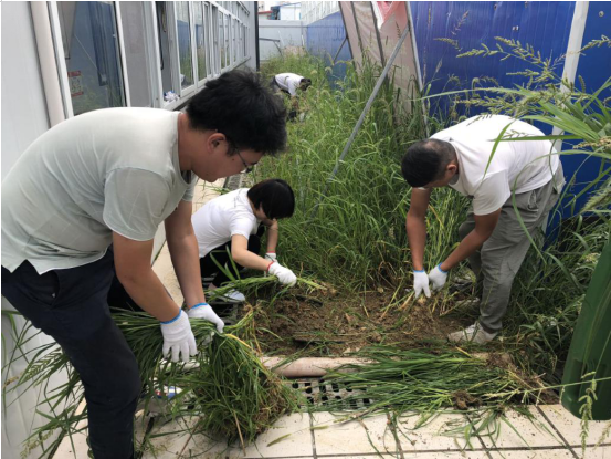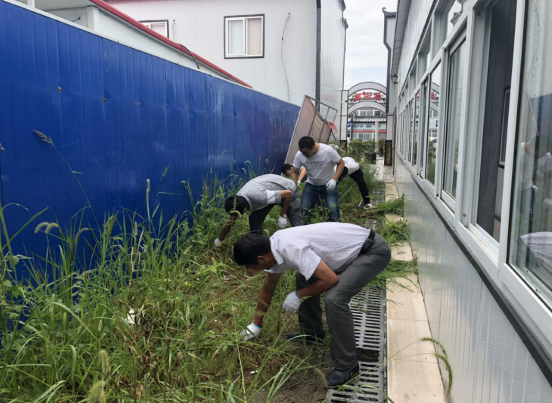 7月25日下午四時,大家頂著炎炎烈日對項目部辦公區周邊雜草進行清理。每位同志干勁十足,充分發揮團隊協作精神,炎熱的天氣擋不住火熱的激情。經過一個多小時的努力,院內雜草全部清除干凈,環境煥然一新。