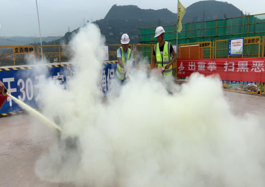 項(xiàng)目部成立了以項(xiàng)目經(jīng)理陳云為演習(xí)總指揮,安全負(fù)責(zé)人梅松柏為演習(xí)副總指揮的指揮部。演練前,項(xiàng)目部結(jié)合實(shí)際擬定預(yù)案,按任務(wù)分工成立滅火行動(dòng)組、疏散引導(dǎo)組、通訊聯(lián)絡(luò)組、防護(hù)維護(hù)組、宣傳教育組,并對(duì)每個(gè)小組的職責(zé)進(jìn)行了明確。
