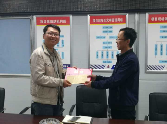 阜陽(yáng)吾悅廣場(chǎng)項(xiàng)目部四月“閃亮之星”的獎(jiǎng)狀在大家的鼓掌聲中送到了李彬手中。