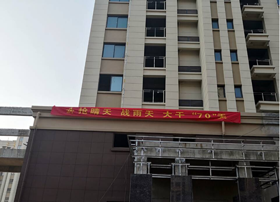 宿松龍溪觀邸項目位于晥西南山區(qū),緊靠長江流域,進(jìn)入冬季雨水天氣較多,一年之中施工時間短,項目年度產(chǎn)值任務(wù)重,工期壓力大。因此,項目部以公司開展大干“70”天勞動競賽活動為契機(jī),根據(jù)項目年度剩余工程量,進(jìn)行倒排節(jié)點(diǎn),科學(xué)編制施工生產(chǎn)計劃,積極開展勞動競賽活動。詳細(xì)分解到每月、每周、每日,實(shí)行周考核、日碰頭機(jī)制。為確保更好的完成大干目標(biāo),項目部領(lǐng)導(dǎo)班子劃分責(zé)任,分段包干,各科室、班組及時加強(qiáng)聯(lián)動。在動員會上,項目總工宣讀了公司《關(guān)于組織開展“大干70天”勞動競賽的通知》,并就施工節(jié)點(diǎn)任務(wù)進(jìn)行了分解。各施工班組詳細(xì)匯報了人員、機(jī)械、物資等施工資源配置情況。會議要求:一是要統(tǒng)一思想,明確目標(biāo),全面掀起施工熱潮,加快施工進(jìn)度;二是要優(yōu)化各種資源配置,做到物盡其用、人盡其才;三是要求各班組廣泛宣傳大干活動的目標(biāo)和重要意義,鼓足干勁,做到全員參與;四是在施工生產(chǎn)大干的同時,必須提高安全意識和質(zhì)量意識,要進(jìn)一步強(qiáng)化項目的基礎(chǔ)管理,通過規(guī)范化的管理,提升項目安全質(zhì)量管理水平;五是要堅定信心,共同努力,堅定不移執(zhí)行落實(shí)公司“大干70天”勞動競賽的通知,堅決打好四季度施工生產(chǎn)攻堅戰(zhàn)。