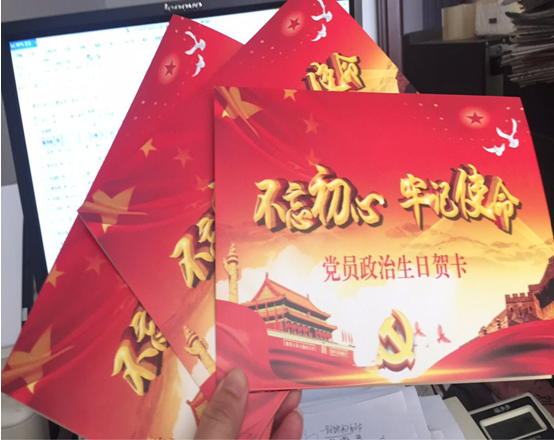 支部書記倪海霞為在三季度入黨的三位黨員統一過政治生日并發放生日賀卡。通過重溫入黨誓詞、重憶入黨志愿,進一步提高分公司黨員隊伍整體素質,讓廣大黨員通過常思“當初入黨為什么、如今為黨做什么、今后為黨留什么”明確黨員使命,增強黨性意識。