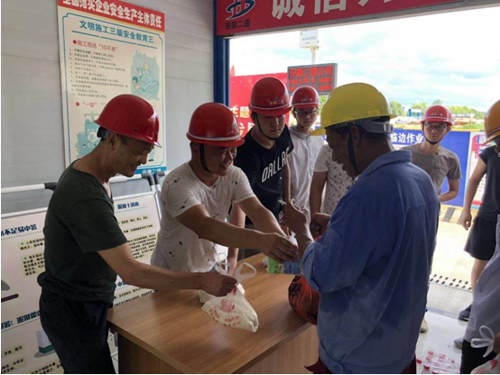 項目部另外向各班組長發放了防暑藥品、白糖、綠豆,由各班組長統一使用。此次送清涼活動獲得圓滿成功,給項目部全體成員送去了絲絲清涼。炎炎夏日送清涼,滴滴關懷沁人心。大家齊心協力,共戰高溫,頭頂的烈日好像也不那么強烈了!