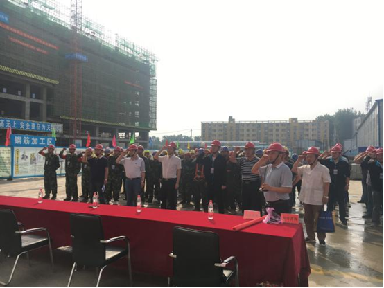 2017年6月8日上午,由安徽二建承建的太和發(fā)藝時尚文化園公共服務中心項目開展2017年“安全生產(chǎn)月”啟動儀式暨安全生產(chǎn)應急救援、消防演練活動,正式拉開了以“全面落實企業(yè)安全生產(chǎn)主體責任”為主題的安全生產(chǎn)月活動序幕。公司副總經(jīng)理葉和永,安全管理部、工程管理部、保衛(wèi)部、太和PPP項目負責人、班組長、一線作業(yè)施工人員等百余人參加了此次活動。