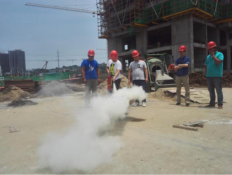 安全宣誓儀式結束后,費經理部署了應急救援預案演練活動。在總指揮王歡的帶領下,按照項目部應急預案內容,依次模擬了火災、觸電等事故的演練。全體成員服從指揮、團結一致、協調分工,出色的完成了各項應急救援演練內容,不僅進一步熟悉了應急救援方案,提高了對安全事故的反應速度,更進一步清楚了安全事故發生的突然性,提高了自身的警覺性。