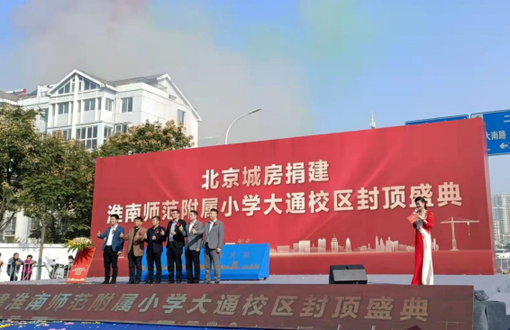 第四分公司北京城房˙淮南師范附屬小學(xué)大通校區(qū)工程部分樓棟主體結(jié)構(gòu)封頂