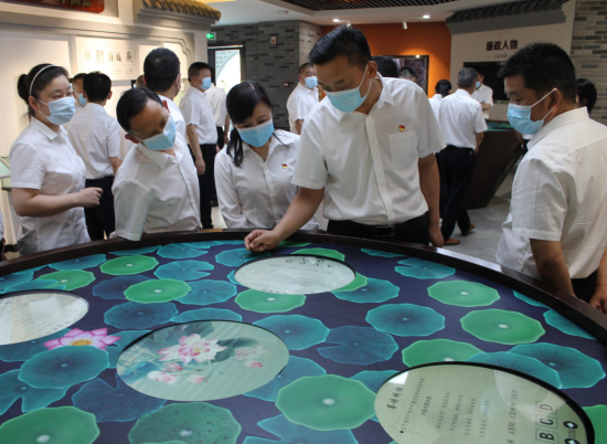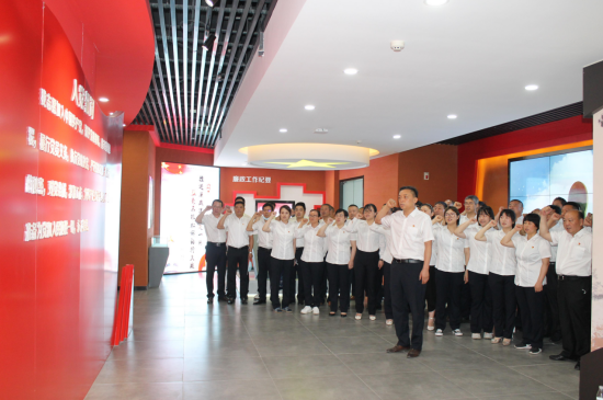 展廳內(nèi),通過講解員講解、觀看圖片展板和影像、互動體驗等方式,大家依次參觀了鑒史問廉、廉政故事、貪腐之害、時光隧道、廉潔豐碑、廉政成果、廉政文章、廉政寄語八大主展區(qū)。一個個詳實鮮活的腐敗典型案例,讓大家在視覺、聽覺上深切感受“知敬畏、存戒懼、守底線”的重要意義,讓黨員干部們的心靈經(jīng)受了一次洗禮,真正將參觀學(xué)習(xí)的成果轉(zhuǎn)化為抓好黨史學(xué)習(xí)教育和黨風(fēng)廉政建設(shè)的強大動力。活動期間,公司黨委副書記、紀(jì)委書記仇多維帶領(lǐng)在場全體黨員同志重溫入黨誓詞。