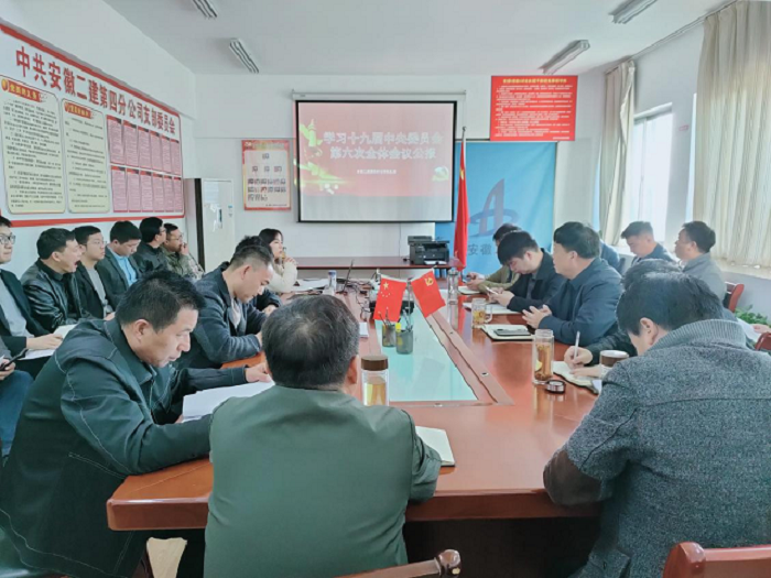 第二分公司黨支部開展“黨員活動日”暨專題學習活動,學習宣貫黨的十九屆六中全會及安徽省第十一次黨代會精神精神。會議強調,要切實用會議精神統一思想、凝聚共識、指導實踐、推動工作。分公司所屬項目部積極響應號召,開展學習宣貫活動。