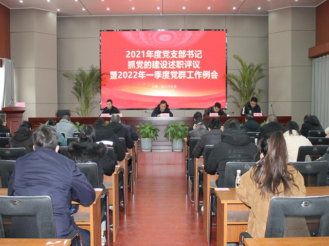 2月21日下午,安徽二建公司在新會議室召開2021年度基層黨支部書記抓黨的建設(shè)述職評議暨2022年一季度黨群工作例會。會上,深入學(xué)習(xí)了集團二屆二次職代會暨2022年工作會議精神。會議要求,機關(guān)各部門、所屬各單位要堅持以習(xí)近平新時代中國特色社會主義思想為指導(dǎo),深入學(xué)習(xí)貫徹黨的十九屆六中全會精神,省第十一次黨代會精神,集團二屆二次職代會暨2022年工作會議精神,全力以赴抓復(fù)工復(fù)產(chǎn)、抓市場開發(fā)、抓公司各項基礎(chǔ)管理工作,以優(yōu)異成績迎接黨的二十大和建企70周年。