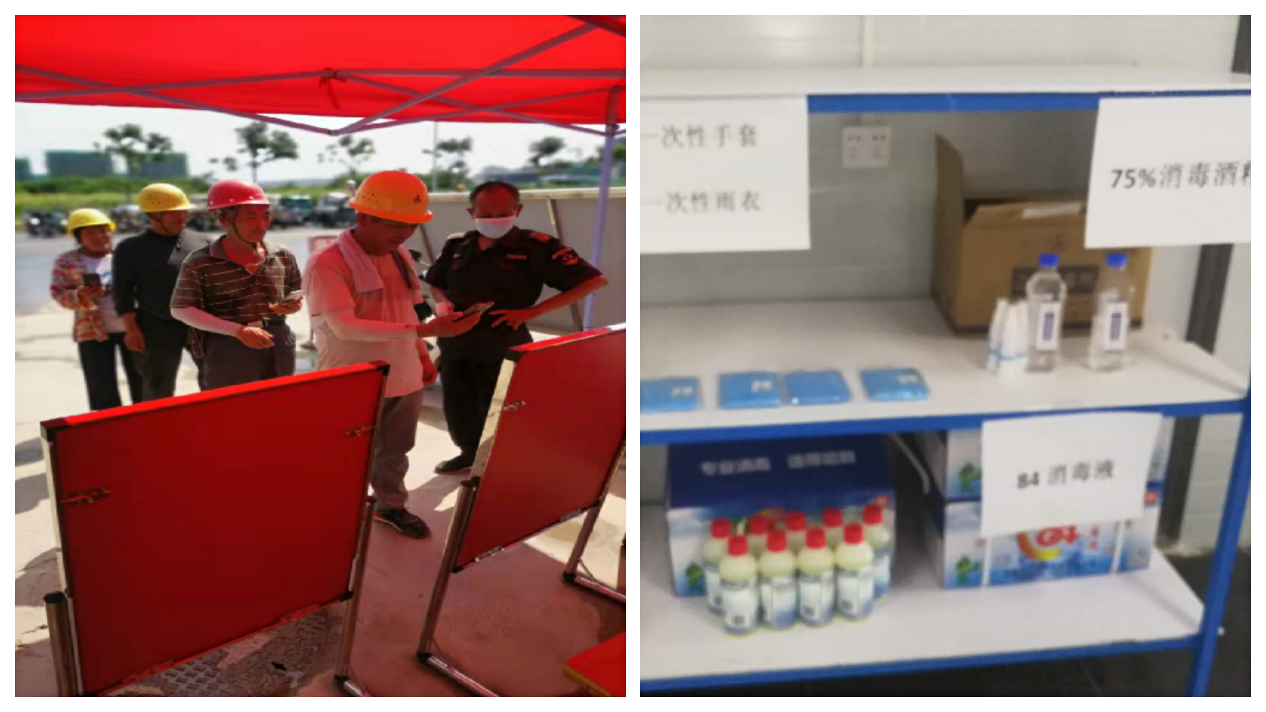 在當前疫情形勢依然嚴峻復雜的情況下,項目部嚴格落實疫情防控措施,做好流動人員臺賬管理,及時進行摸排和更新,實施動態管理,安排儲備消毒液、酒精、手套、口罩等防疫物資,對人員集中區域定期進行消殺?,F場實行封閉管理,所有人員必須經登記、測溫、核驗雙碼并持通行證方可進入。