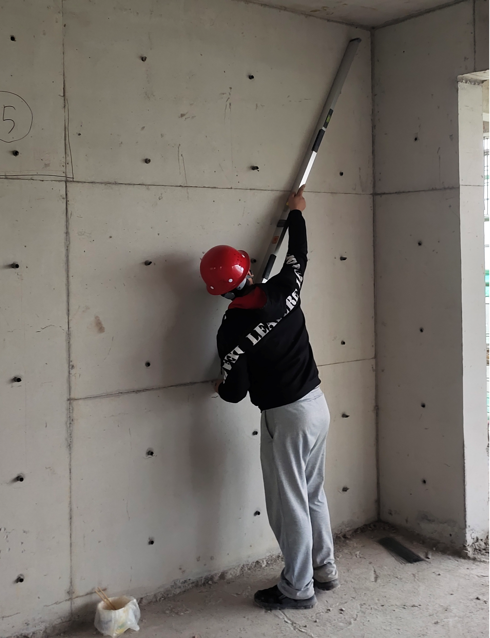 質量員節日期間全過程堅守現場,保證模板鋼筋、混凝土澆筑等施工環節標準規范,精準推進。現場對混凝土墻體進行回彈檢測和實測實量并及時進行實測數據上墻,檢查、發現、記錄、整改問題。