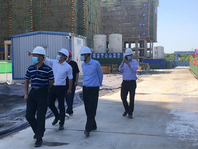 5月5日上午,淮北市住建局局長唐成營一行到第五分公司承建的淮北時代天境項目指導檢查安全文明施工及揚塵治理工作。