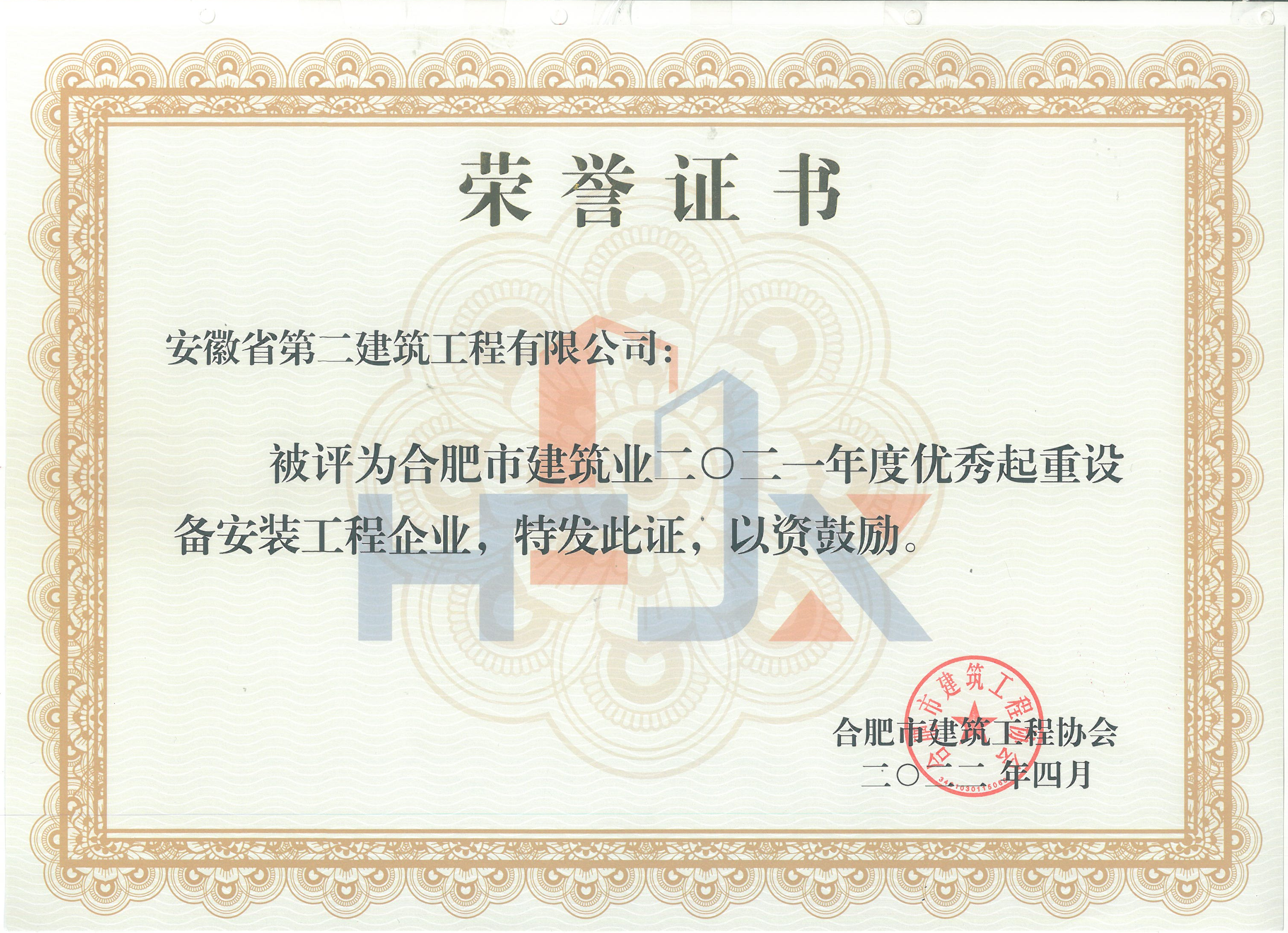 合肥市建筑業(yè)2021年度優(yōu)秀施工起重安裝工程專業(yè)承包企業(yè)