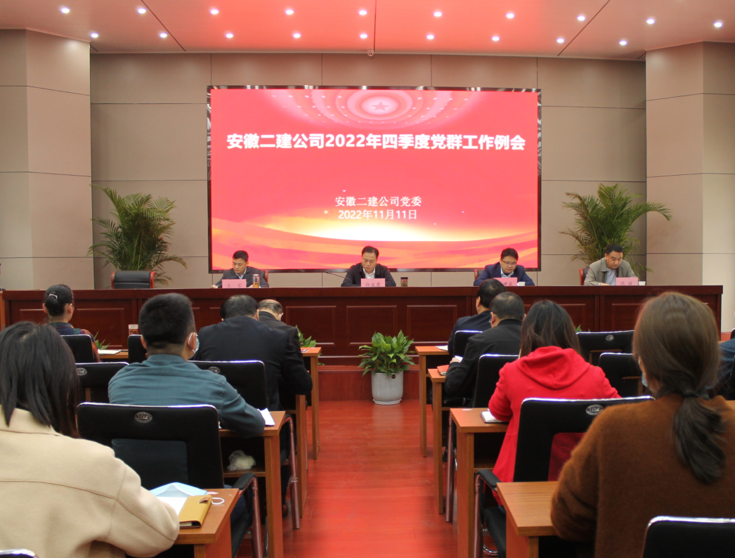 11月11日上午,安徽二建公司召開2022年四季度黨群工作例會。黨委書記、董事長許業(yè)勇出席會議并講話,公司領導李建成、王軍、沈壯出席會議,黨群部門人員、所屬各單位黨支部書記、工會主席、團支部書記、綜合辦負責黨務工作人員參會。會議由王軍主持。
